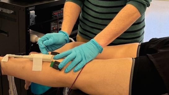 - Indwelling fine-wire for intramuscular electrical stimulation.